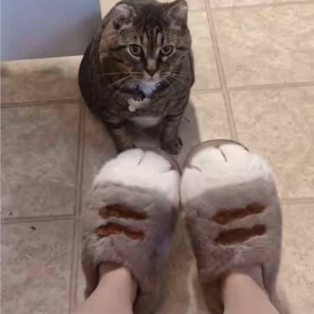 My cat keeps looking at my feet like I’ve become one of them. I guess the slippers are that realistic…
